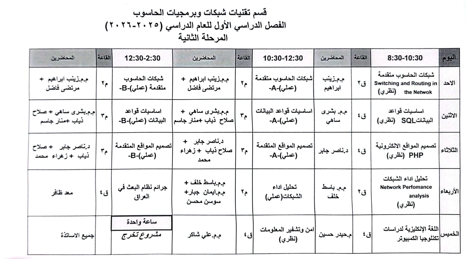 9 | علي شاكر صبار | مدرس مساعد | ماجستير | شبكات | Ali.shaqr@ stu.edu.iq | شبكات اول | |