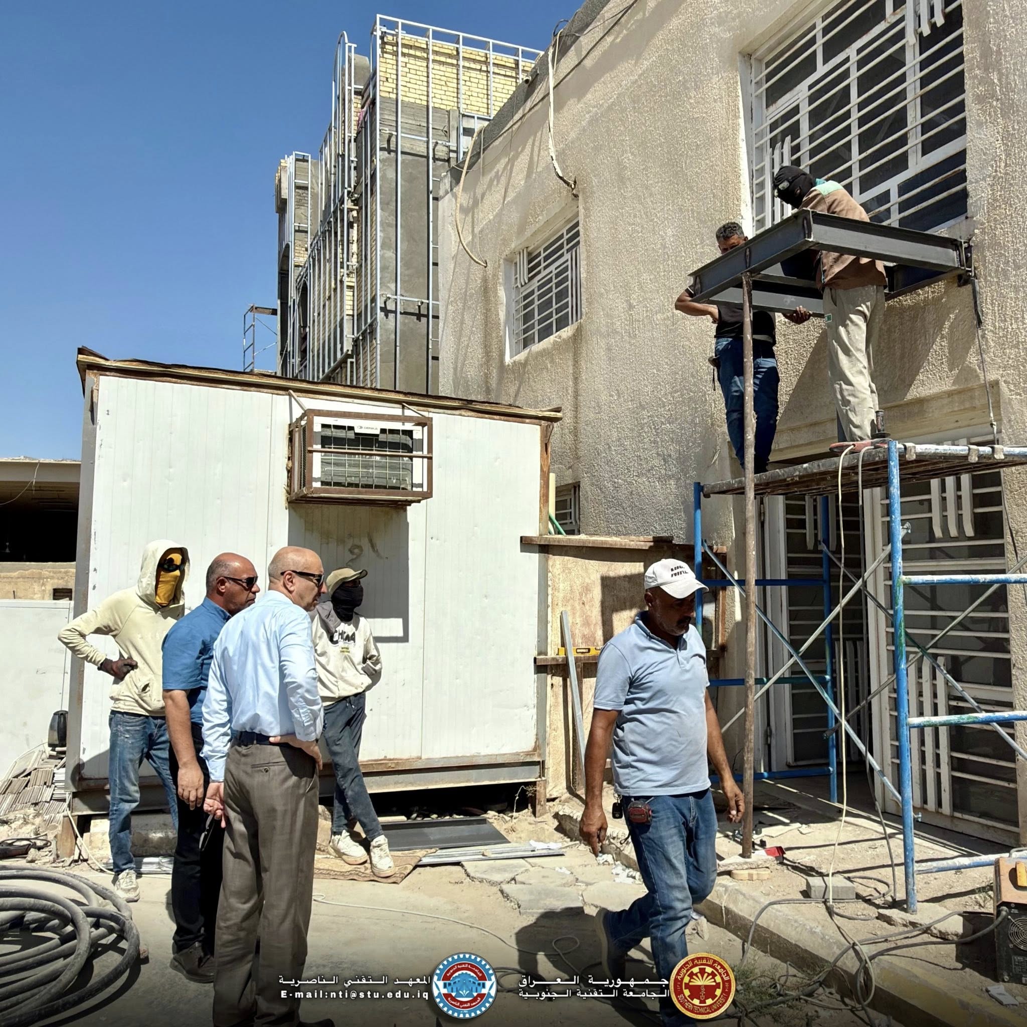 السيد عميد المعهد التقني الناصرية يتابع أعمال وضع وصيانة سلالم الطوارئ في ابنية المعهد